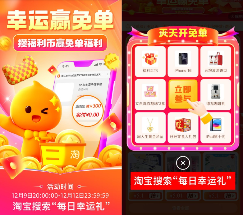 淘宝双12幸运赢免单最高300元