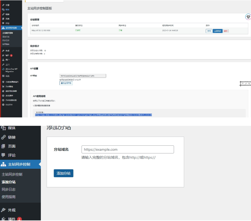 开发子站同步插件
