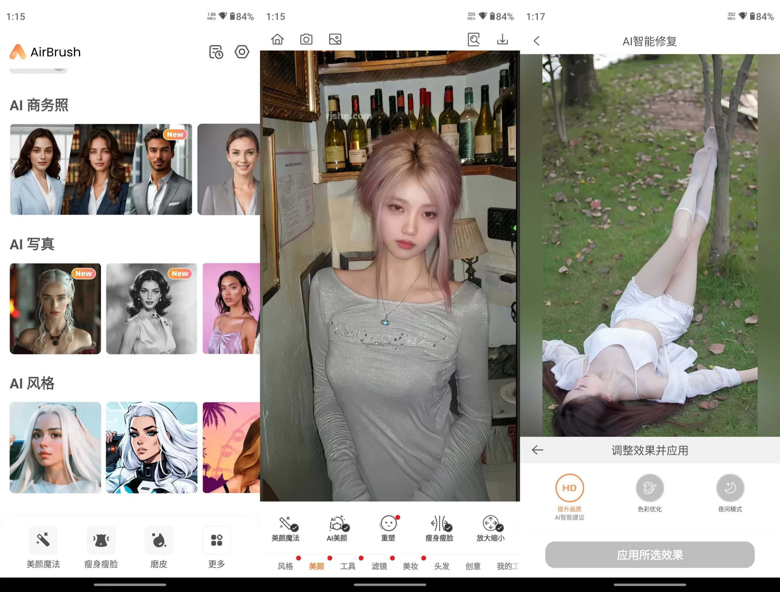 AirBrush 是美图旗下主打自然感修图的 AI 人像编辑工具,核心优势是AI 精准美颜、细节可控、效果真实不假面,同时覆盖照片 + 视频双编辑,支持背景替换、物体移除、身材塑形等全流程修图。界面简洁、操作零门槛,从日常自拍到社交大片都能轻松搞定,特别适合讨厌过度磨皮、追求真实质感的用户。