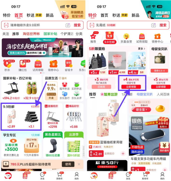 京东-首页“9.9包邮”