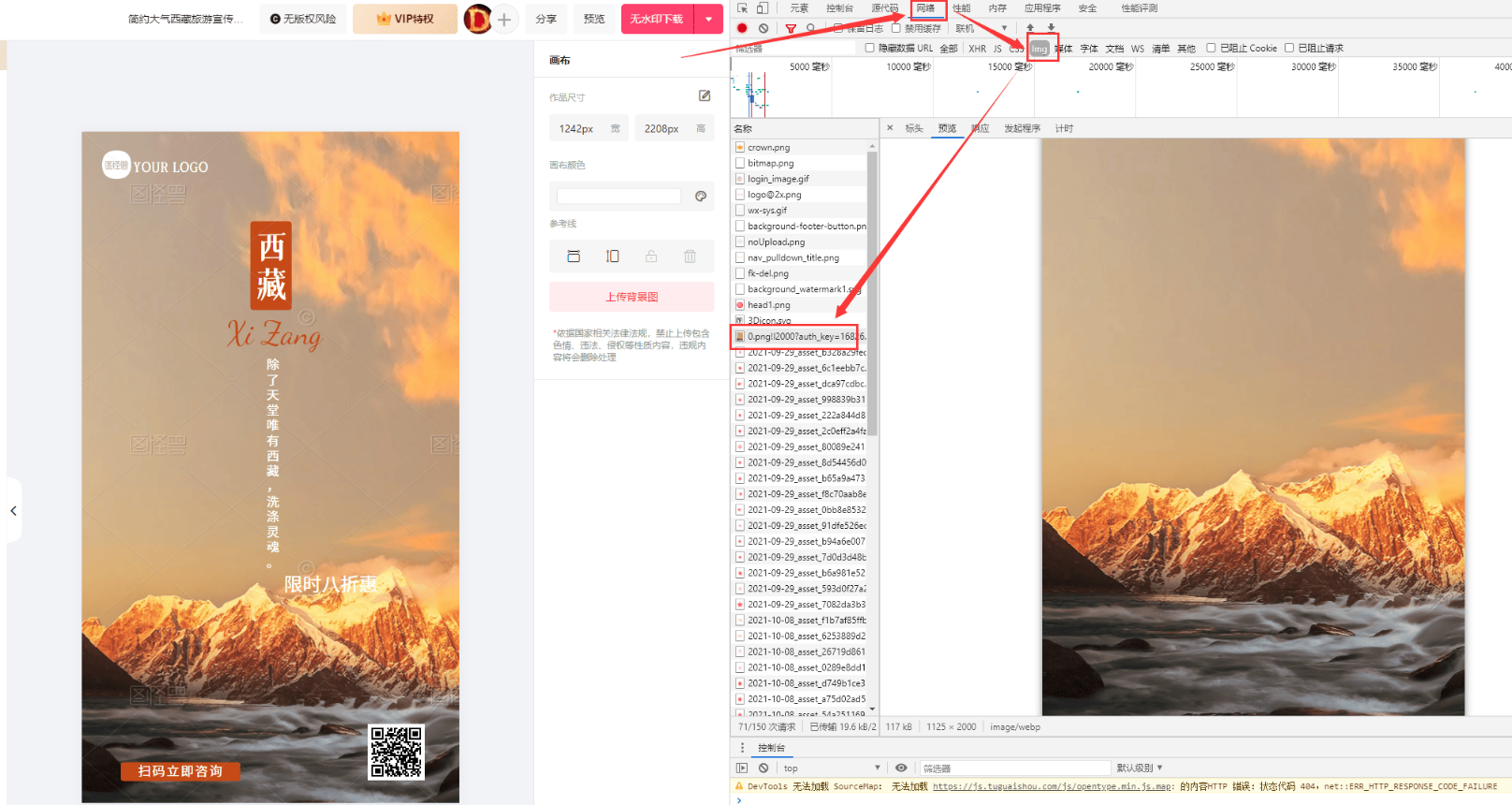 3、如果你的图片已经编辑好了,需要下载,那么系统会提醒你让你加入VIP。如果您对要求不高的情况下,可以按我说的方式进行 先删除水印元素, 然后再网页截图。(一般还是够用了, 如果你电脑显示器分辨率够高,那效果会更好) 水印的标签元素 有一个 class 的名称, 叫做: image-watermark 在代码区域,你ctrl+F5搜索会发现有4个,如下图: