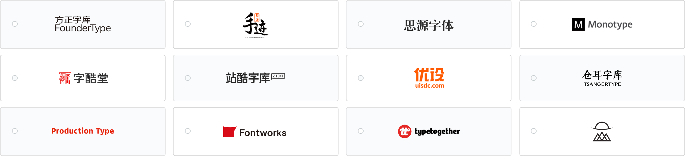字加精选方正,字酷堂,蒙纳等数十个常见字体品牌,一万多款精美字体!
