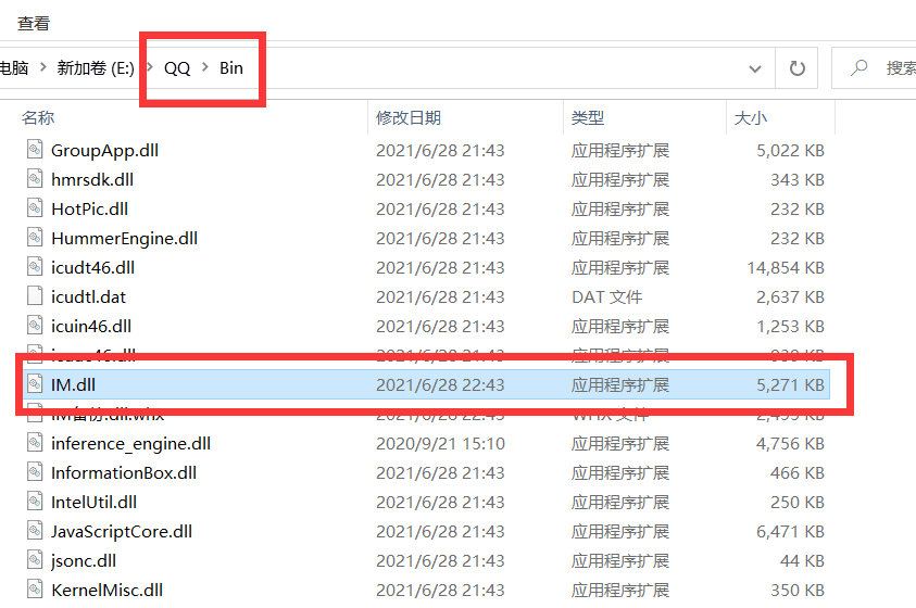替换方法:找到QQ文件夹 QQ/Bin 替换掉IM.dll