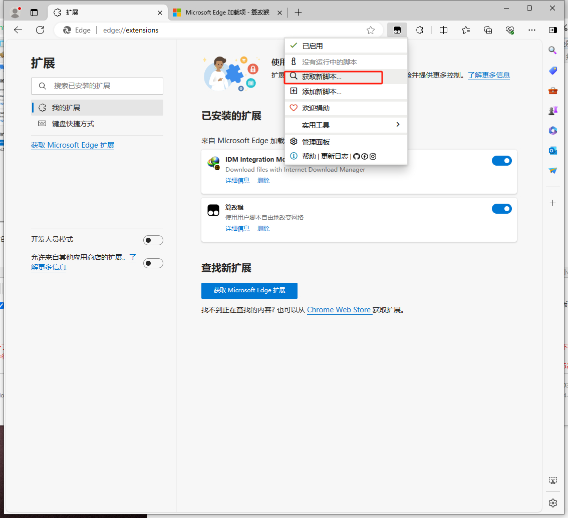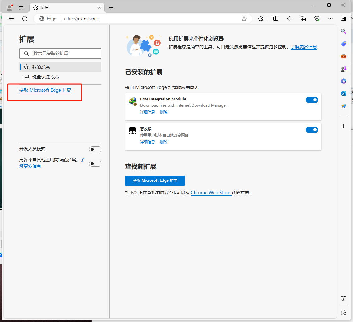 安装完成后再次打开Edge浏览器会有提示IDM插件安装,直接确定即可